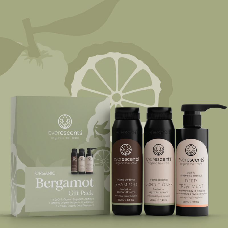This beautiful Organic Gift Pack contains our 250ml Organic Bergamot Shampoo, 250ml Organic Bergamot Conditioner and 235ml Organic Deep Treatment. This pack is designed to gently cleanse an oily scalp and is also perfect for fine hair types whilst moisturising the mid-lengths and ends of the hair. Beautifully designed and packaged with love in Australia using locally made materials.
